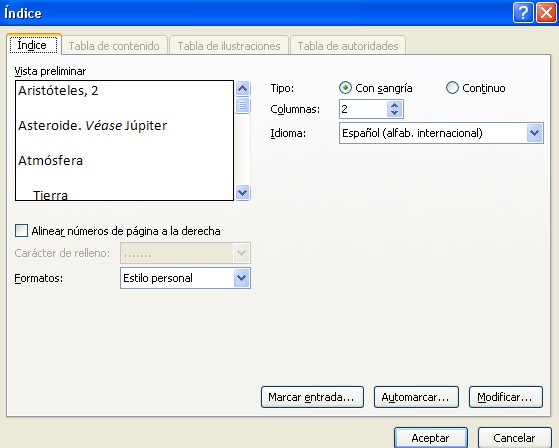 Para insertar índices automáticamente en Microsoft Word, podemos seguir los siguientes pasos:
